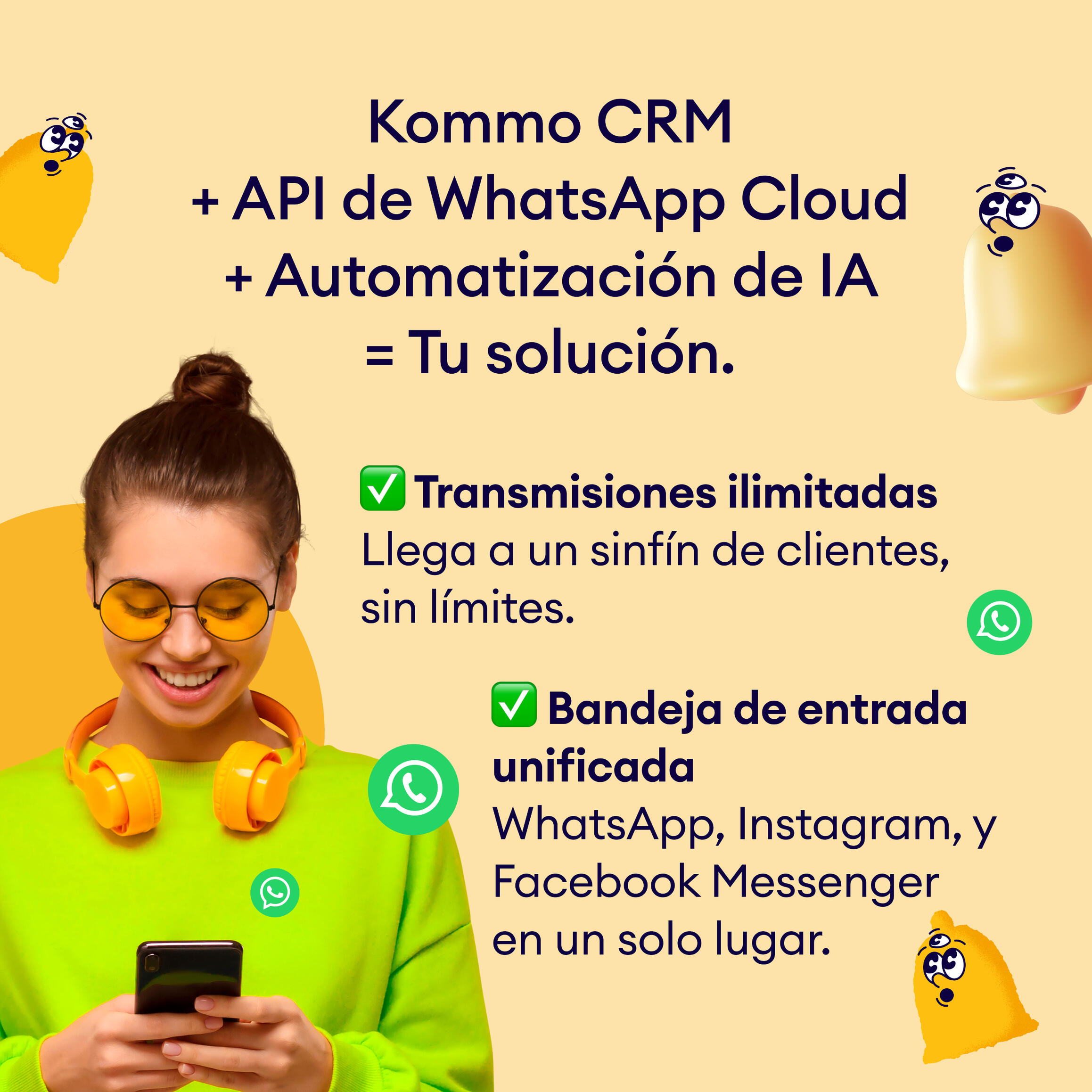 Con nuestra consultoría e implementación de KOMMO CRM y la IA para WhatsApp,